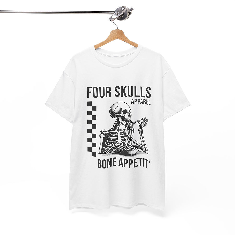 Four Skulls Apparel Adventure And Exploration Apparel Skeletons Merch Eating